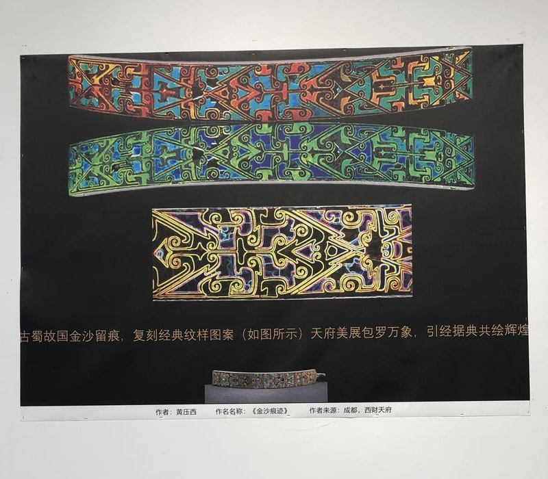 展廳內(nèi)一件作品的圖樣參考了金沙文物和古蜀傳說(shuō)