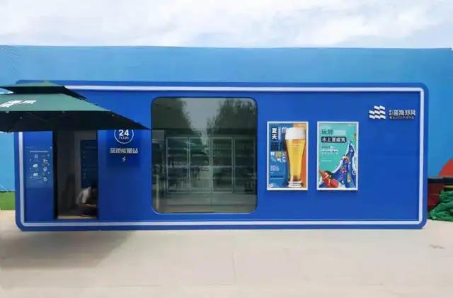 同時,集裝箱的外觀也能根據周圍環境進行定制。此次落地的藍色能量站,便以大面積的藍色呼應了建業·藍海鄭風所指代的藍海戰略,以及智慧社區所蘊含的科技感與未來感,而輔以小面積的海報內容也將豐富外立面設計,實現更直接有效的營銷觸達。