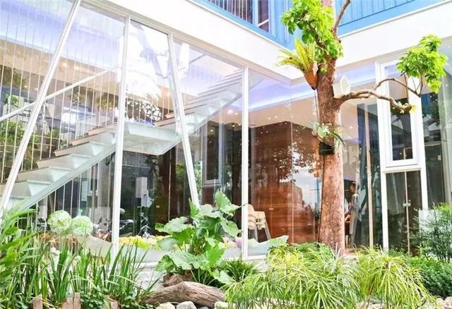 負責設計該餐廳的設計師表示,該土地寬6公尺、長約37公尺,面積不大且呈現狹長型,周圍皆為新大樓,有許多花園景觀。因此該餐廳采用了大量玻璃,引光納景,增強穿透性。